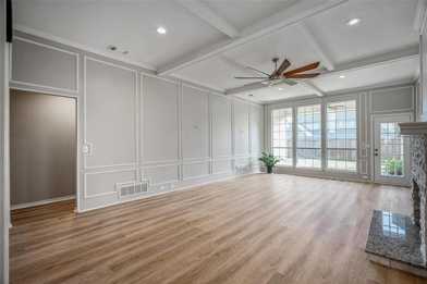 Beautiful 4-bedroom, 2-bath home boasting high custom ceilings and two spacious living areas, including one with a striking fireplace. The home features waterproof vinyl flooring throughout and a stylish kitchen complete with elegant countertops, modern backsplash, refrigerator, and all included appliances. A washer and dryer are also provided for added convenience. Charming shutters, gorgeous light fixtures, and abundant closet space add comfort and character throughout the home. Step outside to a large backyard ideal for gatherings, relaxation, or play. A convenient 2-car garage offers additional storage and functionality. This home has everything you need—comfort, style, and space inside and out.