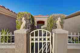 This spacious townhome is located in Sun City Summerlin with all of the amenities Sun City offers. A spacious 2-bedroom home includes a large living room, roomy primary bedroom, as well as an office/den and a utility room for any projects. Flooring is wood laminate and ceramic throughout. A spacious and private gated courtyard, ideal for coffee and the morning paper, greets you as you enter. The primary bath features dual sinks and a step-in shower. Solid surface Corian-type kitchen counters are easy to clean and maintain. If you play golf, pickleball or tennis, swim, work out at a gym or just enjoy a relaxed lifestyle in a sophisticated community, this home is ideal for you.
