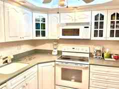 Inside, the charm of this residence is accentuated by the sleek tile floors that create a seamless flow throughout the living spaces. The den, or additional bedroom, provides flexibility for use as an office, guest room, or extra living area, catering to your individual needs. The bedroom exudes warmth with its wood floors, creating a cozy retreat that harmonizes with the coastal ambiance. (Please note) Just as much of the common areas of the building are being impeccably renovated, the balcony for this unit is currently out of service, with a completion date scheduled for approximately May of 2026