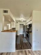 Welcome home to this beautifully updated and move-in ready condo featuring a modern kitchen with gray cabinetry, warm butcher-block countertops, stainless steel appliances, and subway tile backsplash. The functional galley layout offers ample storage and a pantry. Enjoy a spacious, light-filled living area with wood-look flooring, neutral finishes, and an open layout ideal for both relaxing and entertaining. The updated bathroom showcases a stylish vanity, sleek black fixtures, and a tiled shower/tub with a rain-style showerhead, creating a fresh, spa-like feel. Step out onto the spacious screened balcony overlooking a tranquil lake, perfect for morning coffee or unwinding while enjoying peaceful water views. Don't miss the opportunity to make it your next home.