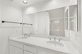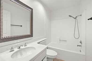 Nestled in the highly sought-after Serabrisa neighborhood this home features new paint, new carpet, and new vinyl flooring with the added convenience of a bedroom and full bathroom on the main level. Enter through the double doors to soaring ceilings and an abundance of windows that flood the home with natural light. The spacious living room flows seamlessly into the dining area and kitchen, offering peaceful views of the patio and open landscaped space beyond. The kitchen features a breakfast bar and a dedicated dining area, both overlooking the patio - perfect for everyday living and entertaining. Additional highlights include an attached one-car garage and an extra assigned parking space right out the front door. Upstairs, you will find dual primary suites, each featuring double vanities and shower-over-tub bathrooms. Enjoy access to community amenities including Arroyo Vista Park, the RSM Beach Club & Lagoon, and multiple pools throughout the city. Ideally located next to Tijeras Creek Golf course, near the 241 Toll Road, top-rated schools, shopping, and dining options.