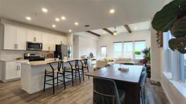 Pulte Home the Nelson plan built in 2023. The home is bright and open and features 4 bedrooms and 3 full bathrooms. The floor plan is known for the unique rounded island in the kitchen overlooking the dining space and gathering room. This home features upgrades such as quartz countertops, stainless steel appliances, and ceramic tile flooring. This home sits on a homesite that has no rear neighbors, which is perfect to enjoy your mornings or evenings on the covered patio or rooftop deck.