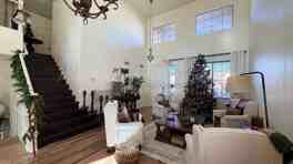 Beautifully designed 5-bedroom, 3-bath home offers comfort, style, and space to spare. Eye-catching curb appeal, low-maintenance landscaping, a 3-car garage, and an inviting front porch set the tone. Inside, you’ll find expansive living areas with soaring ceilings—ideal for hosting gatherings. The interior features elegant lighting, neutral tones, and wood-style flooring throughout the main living spaces. The family room feels warm and inviting with custom wainscoting and a striking fireplace. The kitchen is a dream, showcasing abundant cabinetry, granite countertops, stainless steel appliances, island, pantry, and a charming breakfast nook with bay windows. Retreat to the primary suite through double doors, where you’ll enjoy balcony access, a walk-in closet, and a spacious ensuite bath with dual vanities.