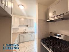The kitchen is equipped with a stove and oven and provides practical cabinet space for everyday use. The open floor plan allows for flexible furniture arrangements to suit your lifestyle.