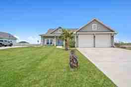 Coastal Paradise with Unrivaled Water Access & Views. Experience the pinnacle of lakefront coastal living in this breathtaking custom home, perfectly positioned to capture spectacular sunrises and unforgettable sunsets. With a private dock and direct canal access to the Port Bay, this property is a dream come true for the passionate angler, offering legendary fishing for Red Drum, Black Drum, Flounder, and Trout just beyond your front yard. Boasting high ceilings and an abundance of windows, the home is bathed in natural light, creating an airy and sophisticated atmosphere throughout. The modern kitchen is an absolute showpiece, featuring a functional, open layout perfect for hosting, top-tier appliances, and ample storage to keep everything organized. The master bedroom offers a luxurious bathroom that features a large, walk-in shower and a substantial walk-in closet providing generous space and organization. Spare bedrooms share a convenient and well-designed Jack-n-Jill bathroom, offering comfort and privacy. Watch stunning sunsets from your covered back patio with kitchen or gorgeous sunrises on your covered front patio. 2 car garage with mudroom and utility room.