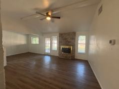 Great 3/2/2 home in Twin Fountains! Freshly painted with an open floorplan and no carpet. Tile flooring throughout the living, dining, and kitchen areas, with laminate in all bedrooms. Enjoy a nice-sized backyard with a covered patio—perfect for relaxing or entertaining. Home features central heat and air, a cozy fireplace, and a convenient front-wrap garage.