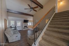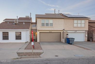 Discover this beautifully maintained 3-bedroom, 2.5-bath townhome in East El Paso, with outstanding curb appeal and a spacious, flowing layout. The inviting living room features high vaulted ceilings, decorative wood beams, and a warm fireplace. A convenient downstairs guest half-bath is perfect for entertaining, while the sunny dining area opens to a beautifully landscaped backyard-ideal for relaxing or hosting gatherings. The updated kitchen offers crisp white cabinets, and modern appliances. Upstairs, enjoy carpeted bedrooms for added comfort: the private primary suite with en-suite bath, plus two versatile secondary bedrooms suited for family, guests, or a home office. Complete with refrigerated air, two-car garage, low-maintenance front landscaping, and a prime location near schools, shopping, dining, and major roads-this move-in-ready home blends comfort, convenience, and excellent value.