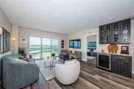 Furnished, light-filled, custom designed, premier corner unit for lease. Some of the details include new electric, new plumbing, luxury vinyl hardwood flooring throughout, custom cabinetry including bar area with beverage cooler, quartz countertops, new 2 1/2 ton AC in 2024, custom designed closets, plantation shutters in bedroom, solar shade in the living room and hurricane shutters on on all 3 sliders on balcony plus so much more! Enjoy water views from you expansive 30 ft balcony that has access from both bedrooms and living room. This condo is located in the prime location of Point Brittany, a 55+ community, which is on the Pinellas Bayway. St Pete Beach is 2 miles away and vibrant downtown St Pete is less than 10 minutes! The amenities are endless as there are 4 heated swimming pools, hot tub, clay tennis courts, shuffle board, a walking path through out the community along the sea wall, clubhouse with an amazing fitness room along with weekly exercise and yoga classes, pool tables, card rooms, boat docks, kayak/paddle board storage and launch, fishing pier and more. So many social events that no one should be without anything to do. To top it off there's The Country Store on the property to save those trips to the grocery store. There is also extra storage and a garage space. NO PETS and NO SMOKING! Don't miss seeing this one! Rent terms are negotiable.
