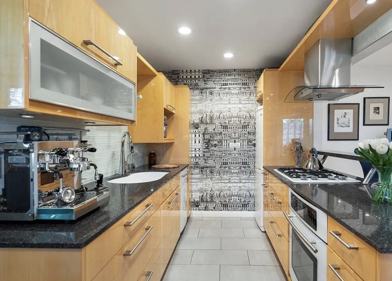 The chefs kitchen is thoughtfully designed with JenAir stainless steel appliances, including a self-cleaning convection oven, soft-close Blum European cabinetry, and striking countertops. A Water Glove H2O filtration system adds both purity and convenience.