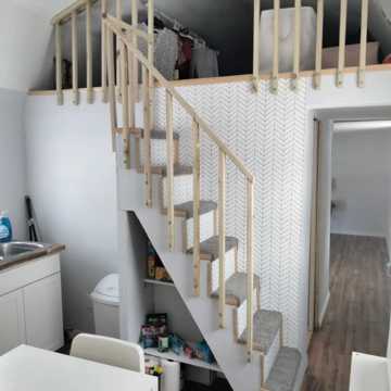 Furnished with a queen-size bed, desk, and chair. This lovely 1 bedroom tiny house with a loft is ready for you! Kitchen includes stove, oven, refrigerator, and microwave, small eat in kitchen. This is a great option for someone looking to live on their own, without all the start up costs and deposits required. Washer and dryer access is shared with other tenants in nearby units. Monthly rental includes all utilities and wifi.