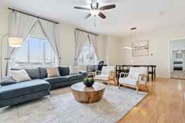 - Living Area: Large living room with 65" Smart TV, comfortable seating, and a dedicated workspace for remote work