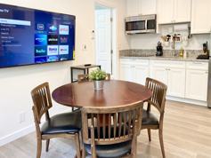 - Brand new kitchen (no dishwasher): induction stove, fridge, microwave, coffeemaker, blender, cookware, utensils & more