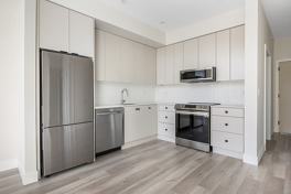 This meticulously designed 1-bedroom, 1-bathroom apartment, coupled with a versatile den, spans a comfortable 610 sq feet, seamlessly blending contemporary living with functionality.