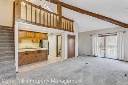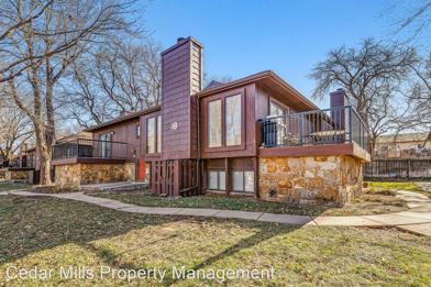 A Must SEE!! 2/1.5 with POOL, LOFT, CARPORT and MORE - Located in Goddard school district is this exceptional Treehouse Condo in the Park with wonderful views- only minutes from Pawnee Prairie Park, hiking trails, picnic areas, and more. This unique unit is sure to rent fast! The exterior sits in a unique landscape with many mature trees, cobblestone walking paths, and colorful landscaping. Inside, there are stairs that go up or down. Going up, there is a large living area, with a fireplace, open to the kitchen and a guest 1/2 bath. There is also a large deck off of the living area with spectacular views. From this level you can go up another flight of stairs to a loft open to the living area below. The lowest level has two spacious bedrooms and a full bathroom. Spacious closets and a laundry room are also on site.