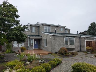 Features include: Four bedrooms and 2.5 bathrooms in more than 2,200 square feet of living space, with expansive views of the channel. Primary bedroom with walk-in closet and bathroom on the main floor, and the main level also includes formal living and dining rooms. Upstairs is a family room with fireplace, three additional bedrooms/office, and full bathroom. Facing the channel is a large deck, and hardscape landscaping.