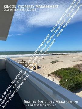 Just steps from the sand, the beach is your backyard in this upper level condo. The home opens up into a spacious living area with picture windows and unobstructed ocean views. Beautiful beach driftwood inspired wood like flooring is throughout. The views extend to your dining area, and a private balcony is accessible from this area. Your kitchen has soft white and gray quartz countertops, white cabinetry with updated hardware that includes a spacious pantry cabinet, and a large dual stainless sink. Appliances include a black and stainless gas cooktop and stove with a custom vent hood, and a stainless refrigerator. There are cabinets in the hallway to the bedrooms for additional storage. One of the two bedrooms has private access to the balcony. The bathroom has an oversized quartz vanity with plenty of drawers for storage, a medicine cabinet to keep the most important things right at hand, and a bath/shower combo with a door. Parking is available with two assigned spaces. A laundromat is conveniently located a couple of blocks away, dining at Social Tap and Spasso’s. and Von’s is just half a mile away. Follow the directions at the top of this listing to schedule a showing. To apply or get more information, contact us at 805, then 422, then 7872. Dial “0” when you reach the recording to be transferred to a live agent.