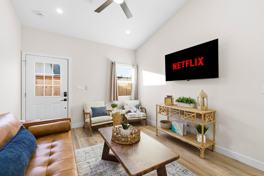 Stay in this brand-new 2BR/2BA offering modern style, an open-concept layout, full kitchen, private laundry, A/C, and a huge fenced backyard. With its own entrance and thoughtfully designed interiors, this 2025-built home provides comfort, privacy, and effortless indoor-outdoor living—perfect for extended stays or a relaxing coastal escape.