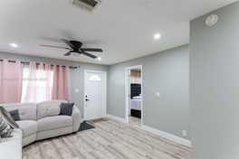 Beautifully furnished two-bedroom, one-bath half-duplex located in Lauderhill. This tastefully remodeled and freshly painted unit features a modern kitchen with stainless steel appliances and granite countertops. Enjoy a brand-new bathroom and stylish wood-laminate flooring throughout. Step onto the screened patio with a convenient laundry area and unwind in the spacious backyard. The property includes two dedicated parking spaces and is centrally located near shopping, dining, and major roadways. No HOA, fast approval process, and all ages welcome—minimum 630 credit score required.