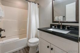 Surfside Studio, Steps to Ocean, Adorable remodeled studio, walking distance to the ocean in beloved, Pacific Beach! Experience the charm of our beachside haven while making unforgettable memories in this tranquil and inviting setting! Please note: this is a true studio with no separate bedroom. Highlights of this cozy abode include a comfortable queen bed, a ceiling fan and A/C to keep you refreshed, small high-top table with 2 stools, plus a flat-screen, Smart TV to watch your favorite movies and shows. You'll appreciate the sleek kitchenette, complete with a mini refrigerator, 2-burner stove, microwave, and coffee maker. Freshen up in the combo tub/shower after a day at the beach or exploring the nearby attractions. Right outside your door, you'll discover a small patio area with a bistro table with seating for two. There is also an outdoor BBQ and a stacked washer and dryer on-site for your convenience. We understand that pets are part of the family, so feel free to bring your furry friends along for the adventure. This studio is within walking distance to the beach, so you can easily spend your days lounging in the sun, swimming in the ocean, or taking romantic sunset strolls along the shoreline.