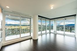 Luxury living in the heart of Brentwood. This like-new 1-year-old corner home offers 2 bedrooms + a large den that functions as a junior 3rd bedroom, 2 bathrooms, and breathtaking mountain, city, and Lions Gate Bridge views. Enjoy an expansive 477 sq ft heated balcony with radiant ceiling heaters and LED lighting, creating exceptional year-round indoor/outdoor living.