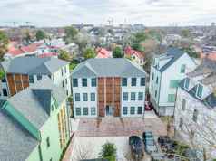 The community consists of 20 luxury rentals and long-term rental apartments, 8 short-term vacation rental suites, 1 office space and 1 restaurant space. The expansive brick court serves as the central element of the community and creates a shared open space for the residents to enjoy. Each building relates directly to the court, creating a common gathering space.