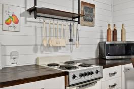 Stepping down into your cozy apartment, walking on stunning luxury vinyl plank flooring you will pass a wine bar as you enter the freshly remodeled eat-in kitchen. Your modern kitchen is complete with microwave, coffee bar, and all the pots, dishes, and utensils you need. Directly ahead you will see your full bath, including a high-end LG laundry system, fresh towels and a starter pack of laundry and bath supplies.