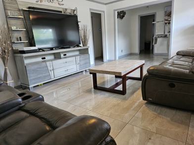 This is a must see 3 bedroom, 2 bath. The highlights of this home is the extra large master bedroom. There's enough space to setup an area for an office space, or simply to enjoy the extra space. This room also includes two closets, so you have plenty of walkin closet space to hang as many clothes as you like. Another special feature of this home is the outside tiki bar area. You will never have to leave your home for entertainment. Attadched is a gas grill and a spot for your t.v. and stereo system. The home is layed out entirely with beautiful tile flooring. Enjoy music while showering with a built in Bluetooth speaker. Just connect your device. Save energy by knocking on the refrigerator twice and they the fridge will light up so you can view what's inside without opening and releasing your cold air. There are many features to this home. Come unlock them all. Don't miss out on this great find. Renter is responsible for all utilities. First month and deposit are required at time of signing agreement. Sorry, no smoking or vaping allowed and only 1 cat permitted with a $200 cat deposit.