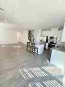Upstairs, the expansive master bedroom includes a walk-in closet and an indulgent master bathroom suite with a frameless standing shower and dual vanity sinks. Two additional bedrooms provide ample space, and the second floor also includes a full bathroom with a bathtub, plus a walk-in laundry room with included washer and dryer.