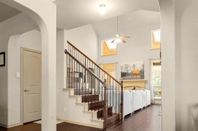 This 4 bed,4 bath beautiful homes featuring an open floor plan. The main level includes the primary bedroom, formal living and dining areas, and a second living space with a gas-starter fireplace. Upstairs offers a versatile living area perfect for a game room or home office, complete with a full bathroom. On the opposite side, you’ll find three additional bedrooms and another full bath. The home boasts laminate wood and tile flooring throughout and includes two water heaters. Enjoy the covered patio overlooking the backyard. Conveniently located near shopping, dining, and entertainment.