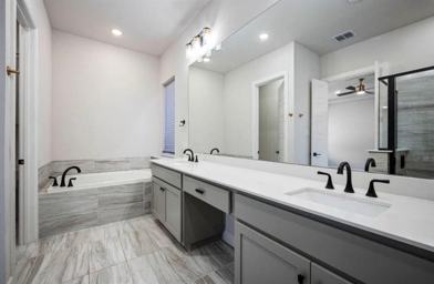 3517 Golden Bell Ct is a modern single-family residence located in the prestigious Heath Golf & Yacht Club community. The Golf and Yacht club include a bar and restaurant with a full menu. Swimming pool, pickle ball and tennis courts, a dock for the boat with full lake access, His and Her lockerrooms, A gym with a full work out space with yoga and pilates classes. All these amenities of the club are walking distance to the club. Built in 2022 by Stonefield Homes, this two-story home offers a versatile open-concept layout ideal for entertaining and family living. It is part of an amenity-rich neighborhood and falls within the highly rated Rockwall Independent School District (ISD), with walking distance to Linda Lyon Elementary School. The main level welcomes you with a spacious great room that flows into the dining area and gourmet kitchen, creating an inviting space for gatherings. The kitchen is a chef's dream, featuring an oversized island, ample counter space, a walk-in pantry, stainless steel appliances (including gas range, microwave, dishwasher, and refrigerator), and elegant cabinetry. Adjacent to the kitchen is a private study for work or reading, and a convenient mudroom off the garage for everyday organization. The primary suite serves as a serene retreat on the main floor, boasting a generous bedroom, vaulted ceilings, oversized walk-in closet, and a spa-inspired en-suite bathroom with dual vanities, a soaking tub, separate shower, and modern fixtures. Upstairs, you'll find a large, secluded game room perfect for relaxation or play, three additional bedrooms with walk-in closets, a shared full bathroom, and a laundry room equipped with washer and dryer. Outdoor living is enhanced by a covered patio with a built-in gas fireplace, it is wrap around 4'x20' and main covered is 9'x26'. The home's interior finishes include hardwood and tile flooring, forced air heating, central air conditioning, and an in-unit gas fireplace in the living room for added warmth.