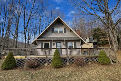This three-bedroom, one-and-a-half-bath home offers a well-balanced layout and is surrounded by mature trees and greenery. The main level features a light-filled living area with abundant windows and seasonal views, and a fireplace with a wood stove insert. The kitchen is practical and well-equipped, offering ample cabinet storage, a dishwasher, and everything needed for everyday living.
