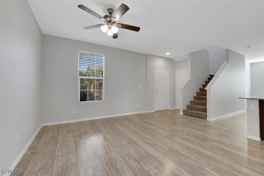 Cute 2 story home located close to Nellis Air Force base. Laminate flooring downstairs, granite counters, recessed lighting, ceiling fans, walk in closets, yard, and a 2 car garage. Freshly painted and ready for move in!