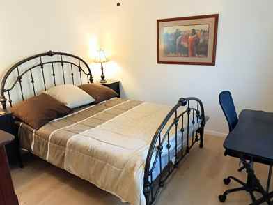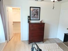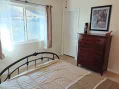 This upstairs bedroom features a comfy queen-size bed, vibrant decor, and stylish furnishings in a co-living home with access to a spacious downstairs area. Conveniently located near the 78 and 5 Freeways, it’s just 15 minutes to Oceanside and Carlsbad Beach, 7 minutes to Downtown Vista, and 20 minutes (14.5 miles) to Camp Pendleton’s Main Gate on Vandergrift Blvd. To have your own private bathroom, you’d need to rent the other bedroom. The shared downstairs space includes a fully equipped large kitchen with plenty of cabinet space, another bathroom, a family room with a 55-inch LG Smart TV, a full-size washer/dryer in the garage, and outdoor perks like a shaded patio with furniture, BBQ grill, garden, and fenced backyard. The backyard is shared with two long-term resident dogs, and no other pets are allowed. *There’s a $200 monthly utility fee per person, with a maximum of two occupants in the unit. The minimum lease term is 6 months, with higher rates for shorter stays. Smoking, vaping, and illegal drugs are prohibited. A security deposit is required at move-in, though some furnishings can be removed. To apply, send a brief profile with your desired move-in date and contact information. Applicants must have verifiable income, fair credit, good rental history, and no evictions or criminal record. If your credit score is 750 or higher and you meet the rental criteria, your security deposit may be reduced. Credit and background checks are required.