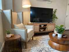 Wonderful like -new designer condo. Two bedrooms, each with private access to one of the two baths. Great living area space with a smart tv. All new furnishings. Fully furnished with washer, dryer, fully stocked kitchen. Walkable to community hospital, parks, shopping and restaurants. Easy drive to State Hospital and Discovery Ski Area. 2 miles to public Jack Nicklaus Signature Golf Course. Ground floor private direct entrance. All utilities paid.