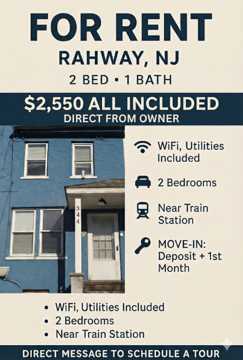 #RahwayRealEstate #NJRentals #AllIncluded #ForRentNJ #RahwayTrainStation #PetFriendlyRental