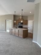 * Spacious island kitchen, upgraded stainless steel appliances (electric range, over-the-range microwave vented outside, dishwasher, refrigerator), quartz countertops, backsplash, upgraded cabinetry with soft-close hinges and crown molding, and a convenient pantry