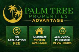 At Palm Tree Properties, we strive to provide an experience that is cost-effective and convenient. That’s why we provide a Resident Benefits Package (RBP) to address common headaches for our residents. Our program handles insurance, identity protection, air filter changes (for applicable properties, cost adjusted accordingly), credit building, rent rewards, at a rate of $39.99 month, added to every property as a required program. More details upon application.
