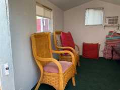 Could be used as a Mancave or She Shed as well as office or Artist Studio. Has 2 chairs, shelving and 2 windows. desk provided on request.