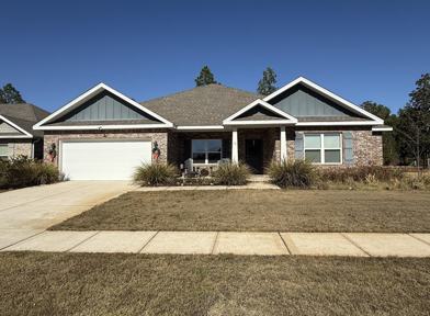 This well-appointed brick home is situated on a spacious corner lot in the highly desirable Hammock Bay community and offers a functional layout designed for comfortable living. The property includes a two-car garage, covered front porch, and an open floor plan that provides a seamless flow between living spaces. Inside, the large living room serves as the central gathering area and opens to the kitchen and dining spaces. The kitchen is thoughtfully designed with abundant cabinetry, a walk-in pantry, attractive countertops, and stainless steel appliances, including a flat cooktop stove. The formal dining room offers flexibility for everyday meals and additional entertaining or multi-purpose use. An office or flex space provides versatility for a variety of needs. The spacious The spacious laundry room includes a coat closet and direct access to the garage, adding convenience and additional storage. The primary bedroom is generously sized and includes a sitting area. The en suite bathroom features a double vanity, walk-in tiled shower, separate toilet room, linen closet, and a large walk-in closet. Guest bedrooms are nicely sized and share an additional full bathroom. Located with convenient access to Highway 20, this home is within reasonable distance to shopping, dining, schools, and area employers, as well as the beaches and amenities of South Walton County. Residents will have access to the amenities offered within the Hammock Bay community, which include resort-style pools, fitness facilities, walking paths, playgrounds, community green spaces, a town center with dining and retail options, and more. Hammock Bay also hosts community events and activities throughout the year, providing opportunities for organized programs and gatherings. No smoking, including vapes. Pets may be considered on a case by case basis with prior owner approval and a non-refundable pet fee.