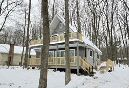 FULLY RENOVATED, THREE BEDROOMS, TWO FULL BATHROMS CHALET IN LOCUST LAKE VILLAGE. New : Widows, doors, kitchen and bath cabinets, appliances, bathroom fixtures, electric baseboards and thermostats, LED lighting, floors and decks. Finished 1446 SqFt. on two levels. Kitchen, large Livingroom with access to covered deck, one bedroom and bathroom on main floor. Upper level with large bedrooms and full bathroom, completes this cozy and airy home. Vinyl Plank flooring throughout and tile floors in bathrooms. Privately situated on 0.46 acres, minutes from the lake, tennis courts and playground. Locust Lake Village is a Non-Gated Lake Community featuring three Lakes, Beaches, Swimming, Playgrounds, Boating, Fishing, Sledding Hill, Tennis Courts, Basketball Court. Community Garden, and Community Events. Close to All Major Poconos Attractions! Small pets to be considered.