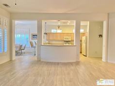 Long term rental in fabulous Sun City Palm Desert, 55+ senior community. Active adult living at its best. Community offers golf, tennis,pickleball, fitness center, restaurants, pools and so much more. Available now. Monterey model with 3 bedrooms and 3 baths. This popular great room home has a spacious south facing rear yard with a textured concrete patio surrounding a pebbletec pool and spa. The extended covered patio provides ample shade in addition to the abundant sunshine. Decorative concrete hardscape and a gated front courtyard provide curb appeal. Inside 12'x24' tile is in all but the bedrooms. 10 foot ceilings and transom windows provide a light and open environment. Plantation shutters are throughout. The great room has a tile trimmed gas fireplace that turns on with the flick of a switch. The kitchen has corian counters with rounded edges, a breakfast bar, island and abundant recessed lighting. Raised panel cabinets are in the kitchen and bathrooms. The primary suite has a slider to the rear yard and a large walk-in closet. The primary bathroom has dual sinks, a stall shower with glass enclosure and an oversized tub. The guest wing of the house consists of 2 bedrooms and one bathroom that has a stall shower with glass enclosure. The 3rd bathroom has a stall shower w/ glass enclosure. Between the kitchen and garage sits a good-sized laundry room. The extended 2+ golf cart garage has an epoxy floor. The home is equipped with a central vacuum. Lease includes: HOA cable/internet and WIFI, gardener and pool maintenance.