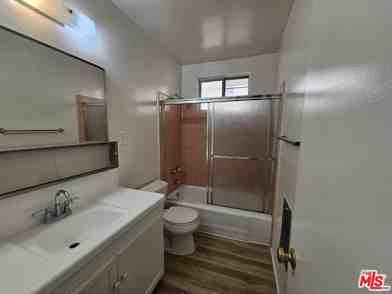 Freshly updated, upper level, rear two-bedroom, two-bathroom unit in prime West Hollywood neighborhood. This light and bright unit features an open living room, dining room and kitchen floor plan, wall AC unit in the living room, newly-tiled kitchen with newer appliances. There are two generous bedrooms, one is ensuite, with a second bathroom offering a tub/shower combo. Both bedrooms have ceiling fans. The unit includes one covered parking space, and access to community laundry in the building. The residence is a stone's throw from all that West Hollywood has to offer.