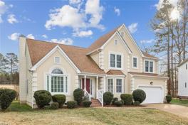 Experience luxury living in this 4 bedroom, 3 bathroom home, situated on a cul-da-sac overlooking a golf course. First floor bedroom with full bathroom. Spacious kitchen boasts marble countertop and newer appliances. Vaulted ceiling with skylights in living area. Primary bedroom has trey ceilings, walk-in closet, and a gorgeous bathroom suite. Dual zoned A/C. Exterior features include front porch, deck, and fenced-in backyard. HOA and neighborhood amenities: golf, clubhouse, gym, indoor/outdoor pools, tennis courts, baseball fields, etc. Convenient to military bases, I-64, trails, shopping, and restaurants. Schedule your showing today!