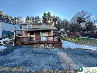 Beautifully updated home For Rent in Lehigh Township. Pride taken with the renovation of this home from the new flooring, new drywall, and new oil furnace for heat and hot water. Enter first floor by covered deck with french doors to rec room with tile flooring. A bedroom with private sliding door to deck, full bathroom, and laundry area. Second floor offers open concept living room and kitchen with vaulted ceiling and kitchen island, bedroom, full bathroom, and sunroom with tile flooring that exits onto a side covered deck to the generous sized yard. Amenities include shed and parking pad for 2-4 cars. Landlord pays water, sewer, and lawn care. Tenant pays oil, electric, trash, snow removal, and renter insurance policy. All occupants 18 years and older must complete rental application, credit check, and background check. NO Pets! No smoking/vaping. No Sec. 8. Northampton School District.