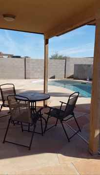 This must-see 4-bedroom home sits on a desirable corner lot and features a stunning, resort-style backyard with a sparkling pool, palm trees, outdoor kitchen, and BBQ grill, with pool service provided for added convenience. The split floor plan offers privacy, with the fourth bedroom ideal for use as an office or den. The primary suite includes a bay window with a sitting area and direct access to the pool. Inside, the home boasts beautiful hardwood flooring throughout, an updated kitchen with brand-new quartz countertops, new cabinetry, a modern sink, stainless steel appliances, an abundant amount of storage, built-in surround sound in the living area and a washer and dryer are included. Electricity is included in the monthly rent, providing added value and predictable utility costs. Residents also enjoy HOA amenities including walking paths, a basketball court, and playgrounds, enhancing the neighborhood lifestyle. Additional amenities include central air and heat. This home is not pet friendly and will not last long. Available December 22, 2025, for $2,600 per month with a $2,600 security deposit. Please submit the form on this page and/or contact Kristen at 256-202-0880 to learn more.