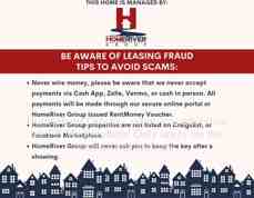 HomeRiver Group does not advertise properties on, LetGo, or other classified ad websites. If you suspect one of our properties has been fraudulently listed on these platforms, please notify HomeRiver Group immediately. All payments related to leasing with HomeRiver Group are made exclusively through our website. We never accept wire transfers or payments via Zelle, PayPal, or Cash App. ..