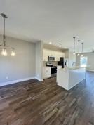 Enter the home into a welcoming breakfast nook, opening into an open-concept kitchen and living area—ideal for everyday living and entertaining. A half bathroom is located toward the rear of the main level, and the living room opens to a small backyard.