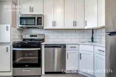 * Updated Kitchen – White cabinets, black tile, stainless steel appliances