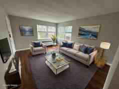 This home features: Fresh paint; updated kitchen with SS appliances; partially finished basement; shared washer & dryer hookups; off-street parking; partially fenced-in backyard; and more!