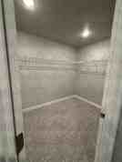 - Primary bedroom with a walk in closet, standard closet, and vaulted ceilings